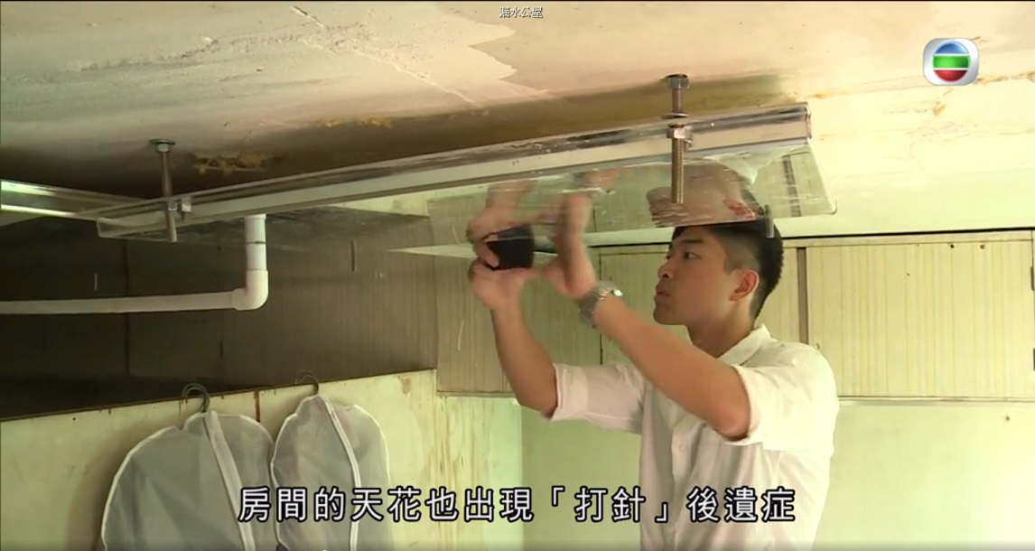 高齡公屋特別大機會遇到天花漏水情況,屋署收到投訴後通常用「打針」化學灌漿方法修補天花裂縫,可是並未有改善,住戶需擔心漏電風險。BDC工程師指出:若不徹底解決滲水問題,長遠對樓宇結構亦有危險。